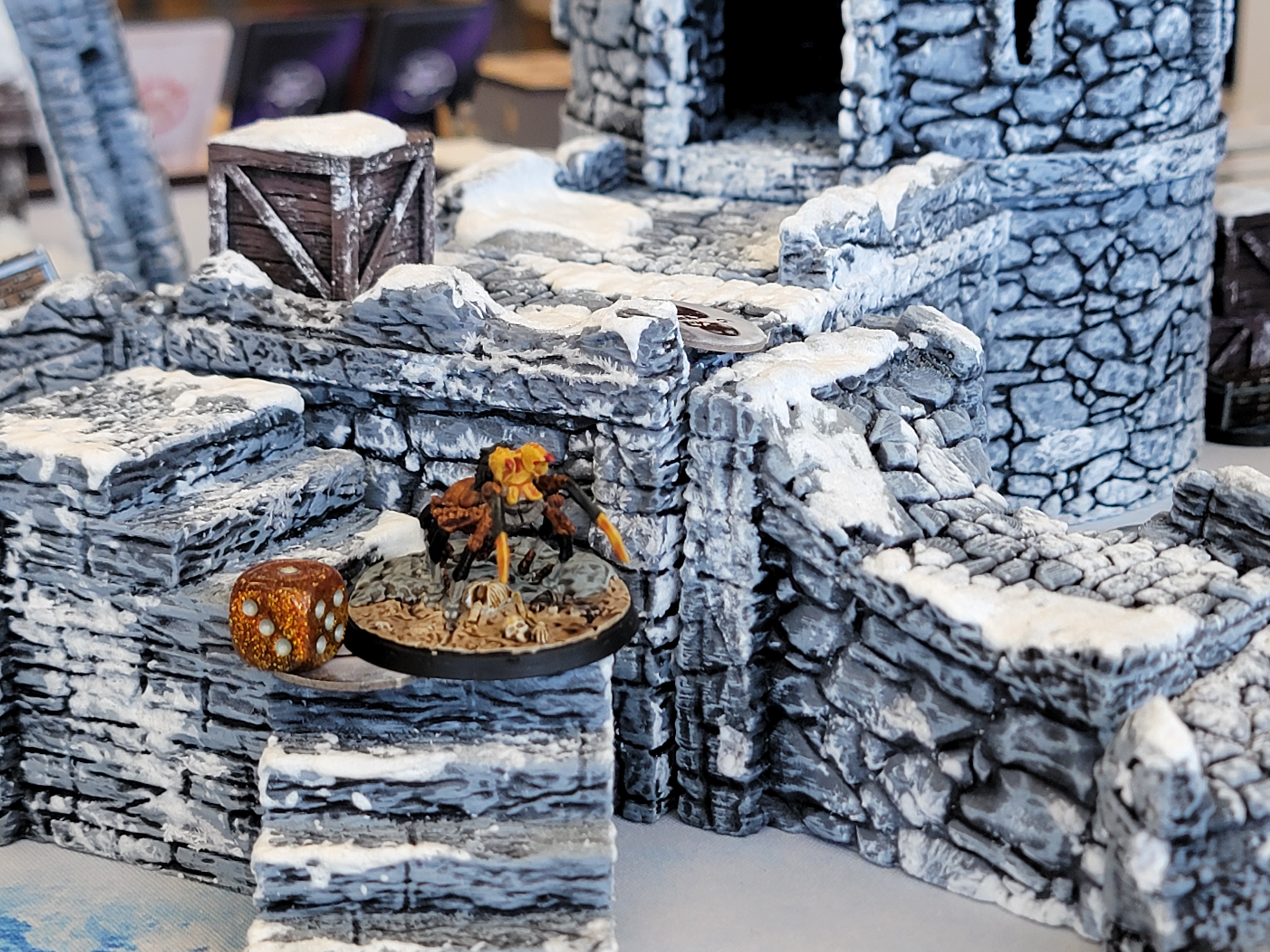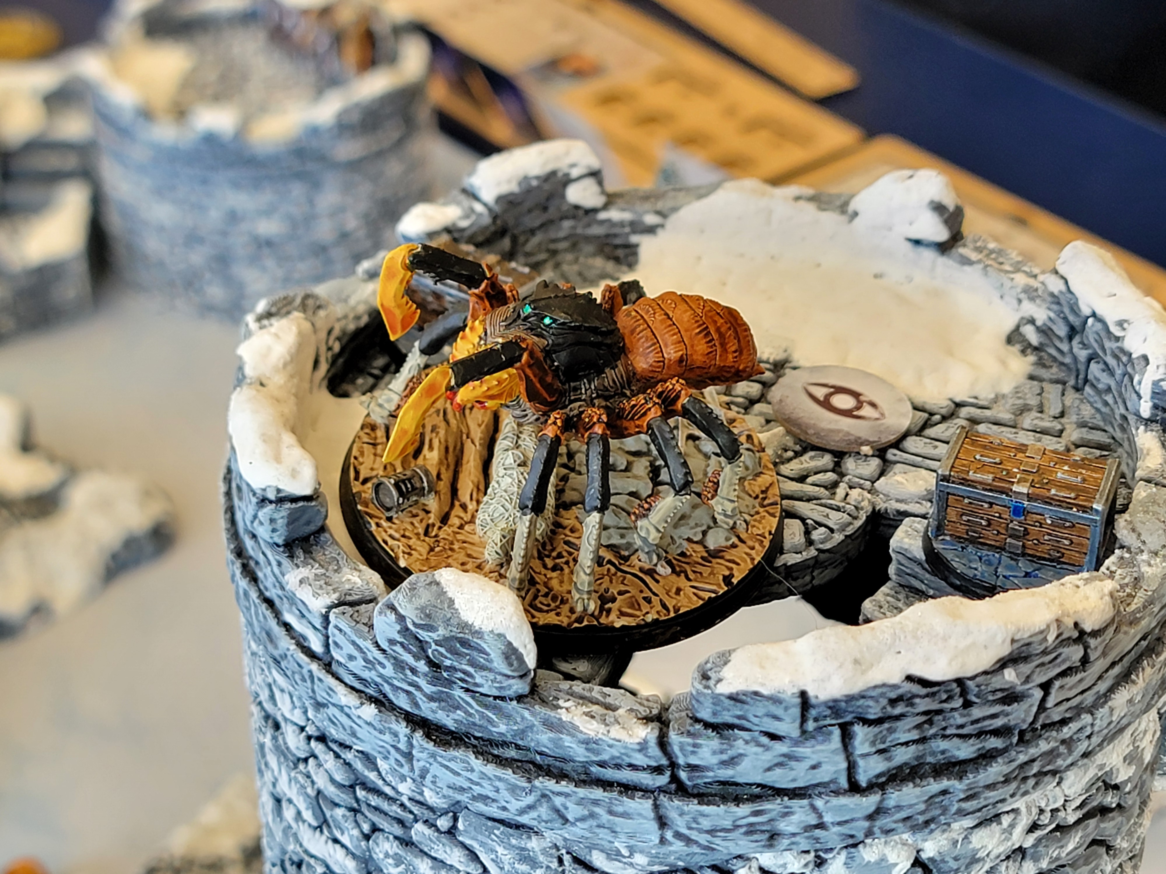 The spiders were meant to guarantee me some easy VP, whereas the troll was meant to distract my opponent and drag them into a rough melee. It… somewhat worked. The troll ate up some of his time and was higher on his target list because it was worth extra VP to me. The spiders were, mostly, easy kills–except they were about the only thing my archers hit!