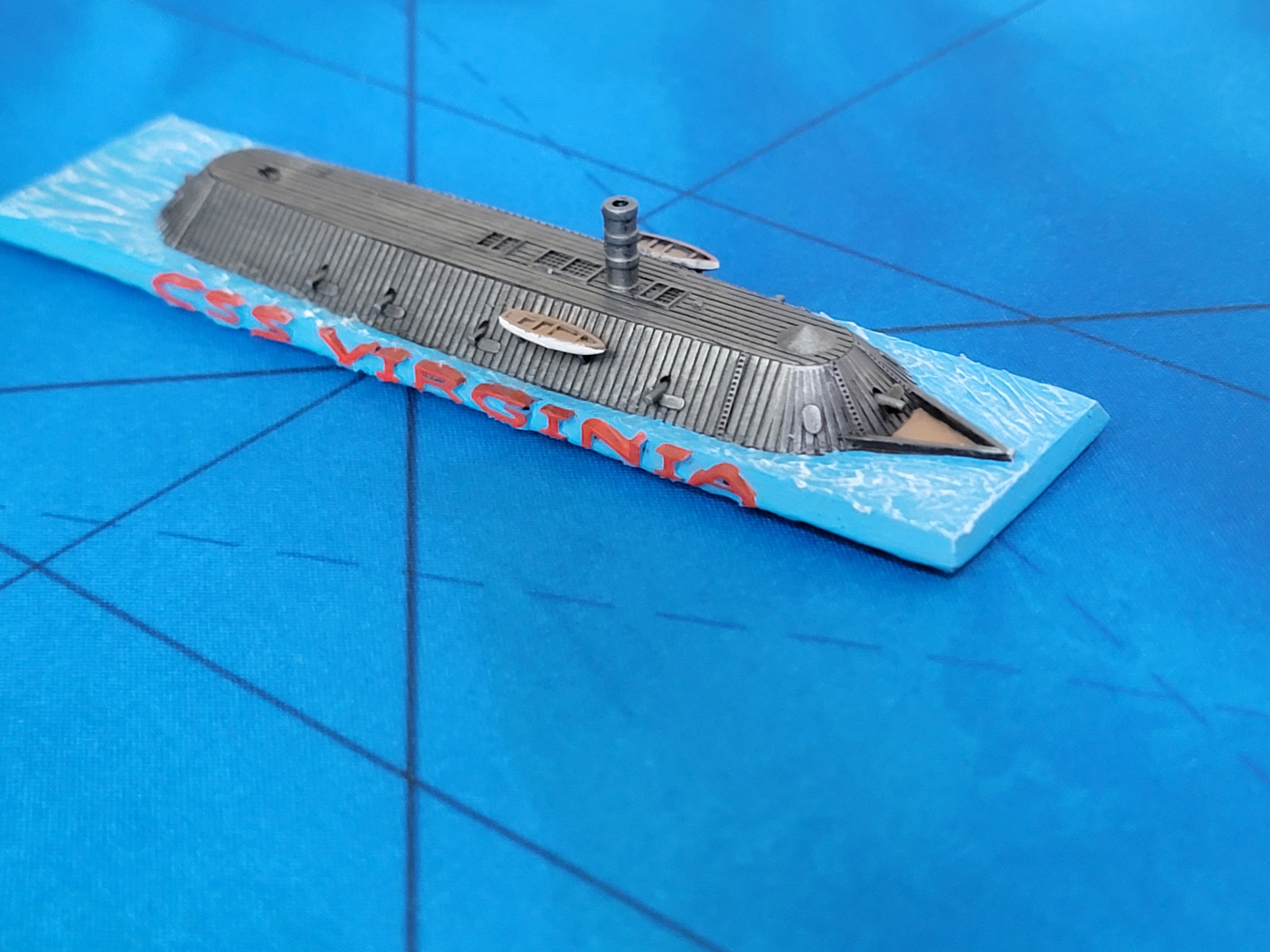 The Monitor warped a bit–going forward, I’m going to print off the ships independent of their bases. Printing them with their bases made it hard to properly clean them and prevent warping without noticeable damage from removing the supports.
