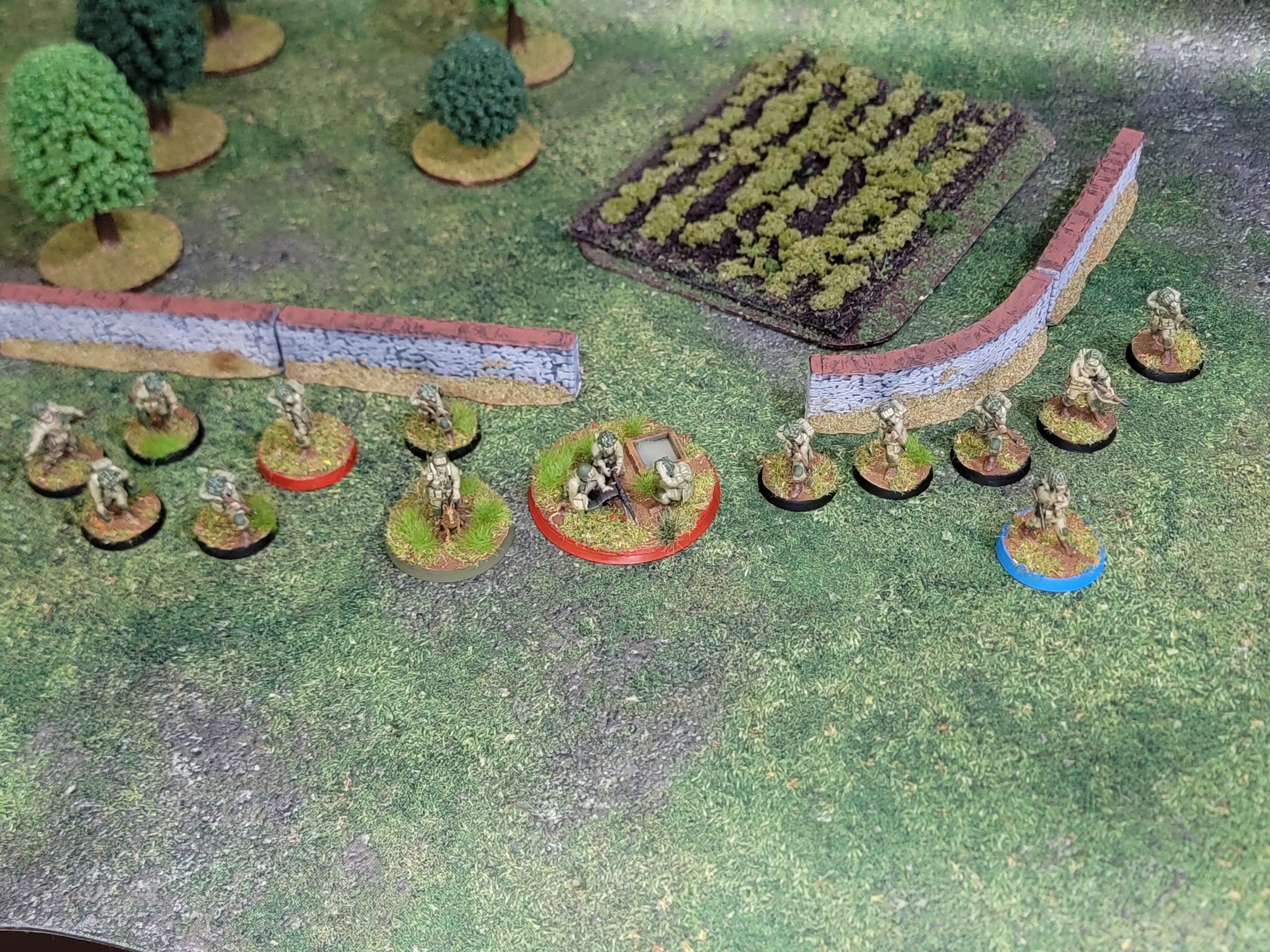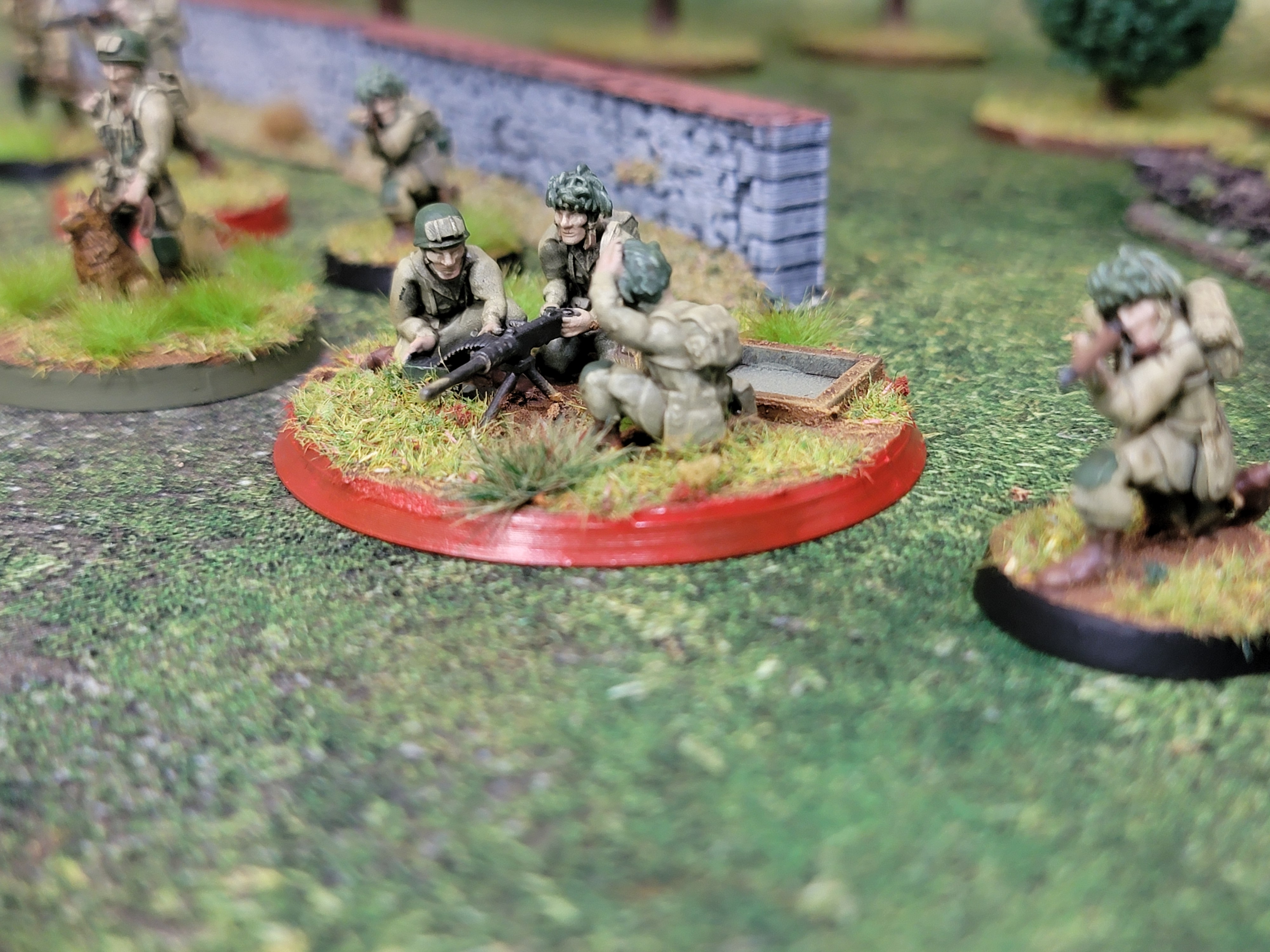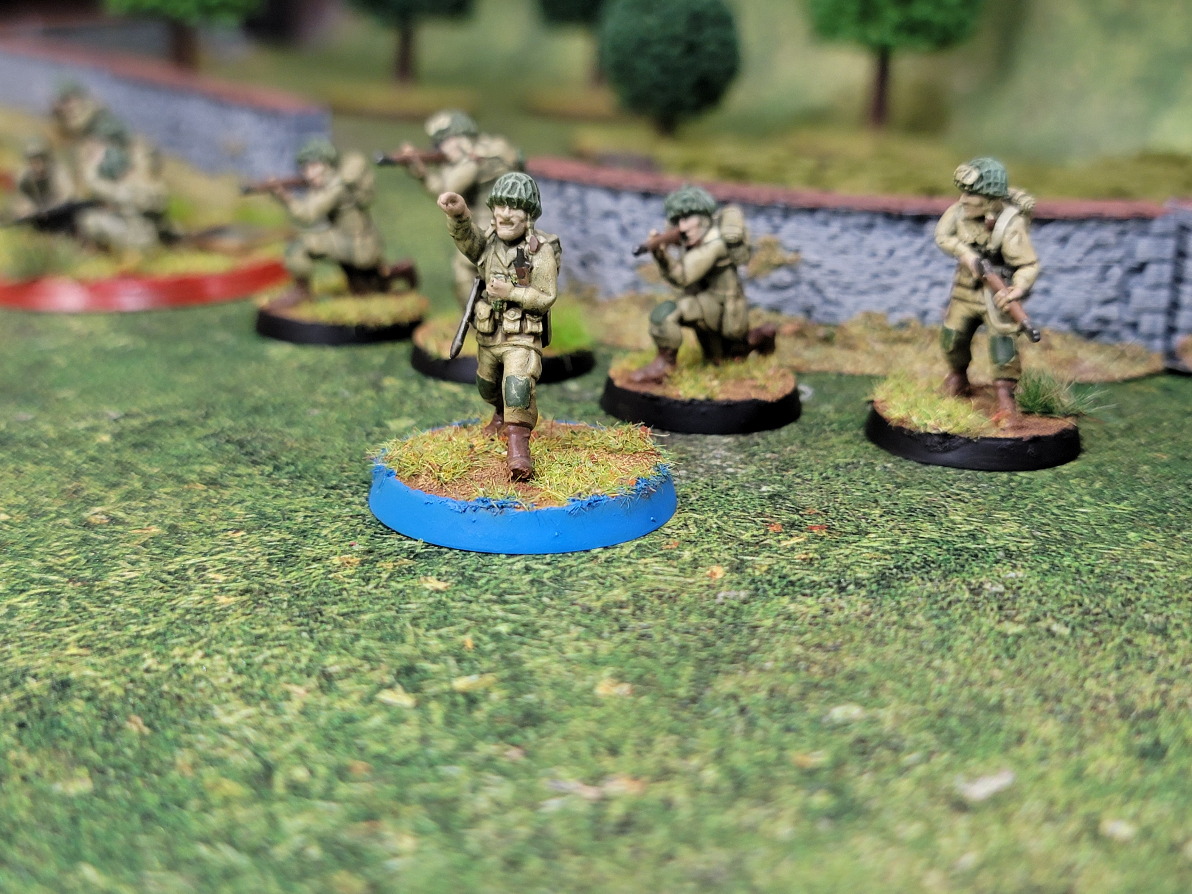 I intentionally built this squad to represent any of the American squad types presented in the base Chain of Command V2 book. That’s why there’s both a BAR (the single man on the red base) and a full LMG team.