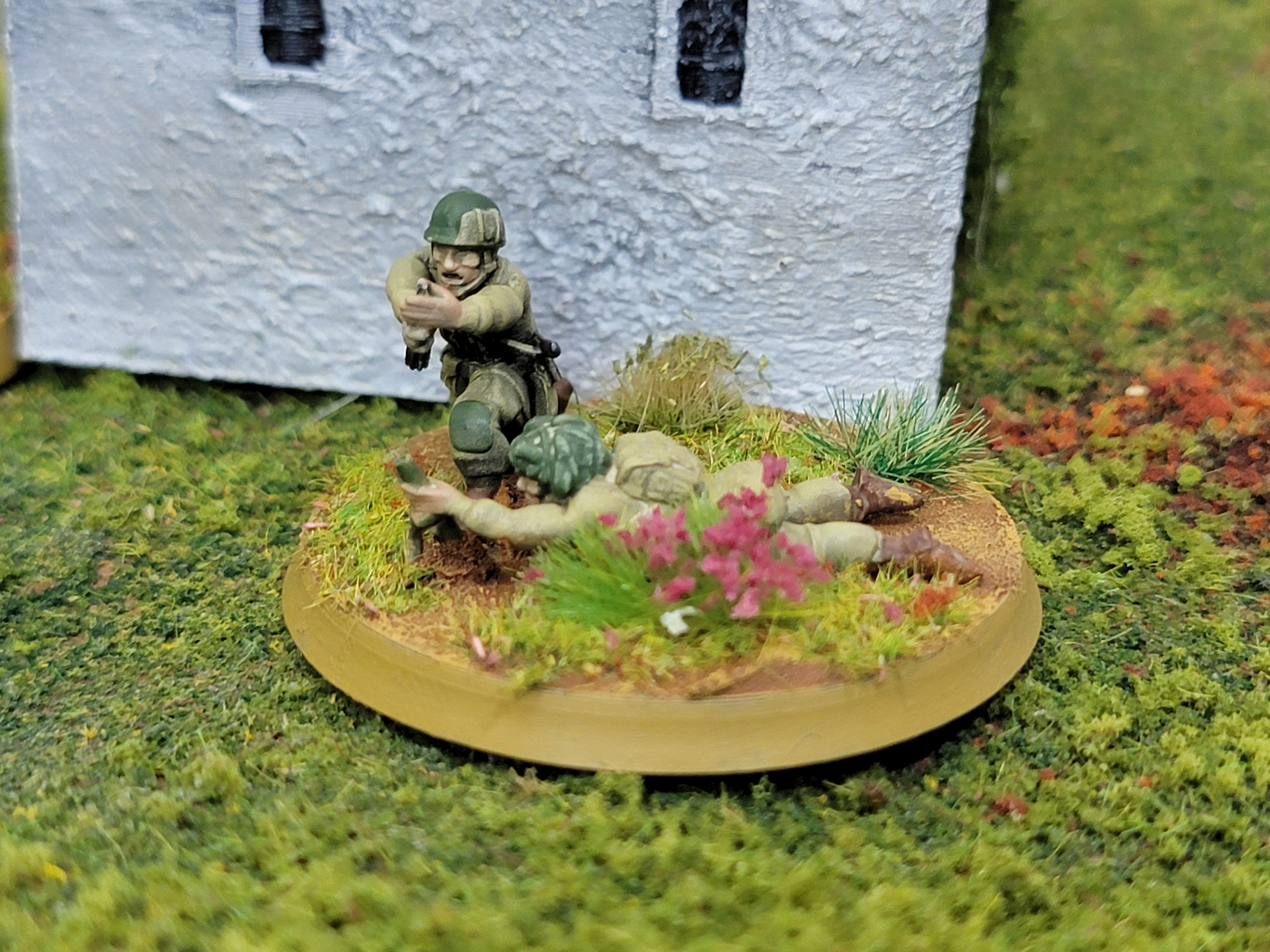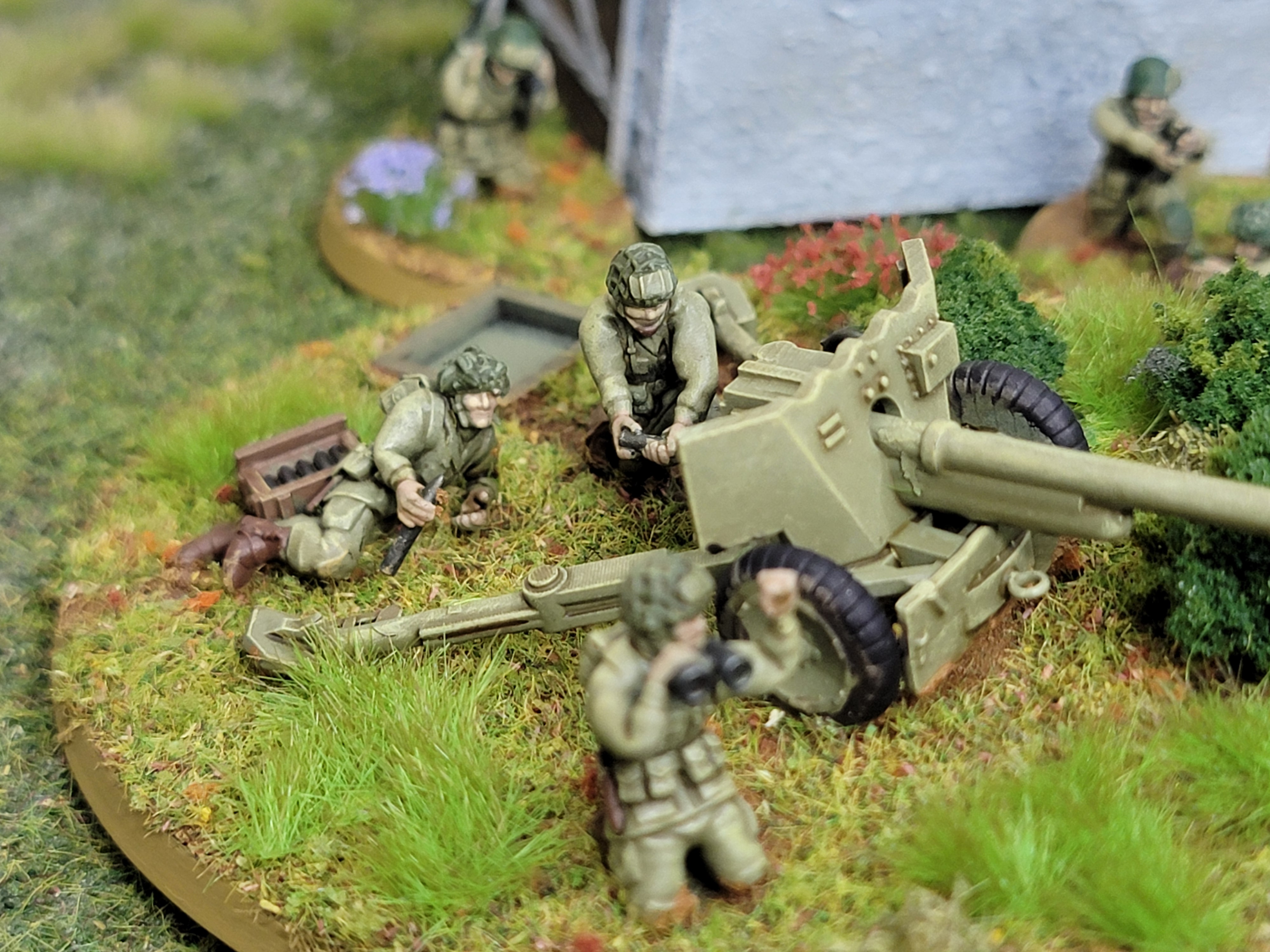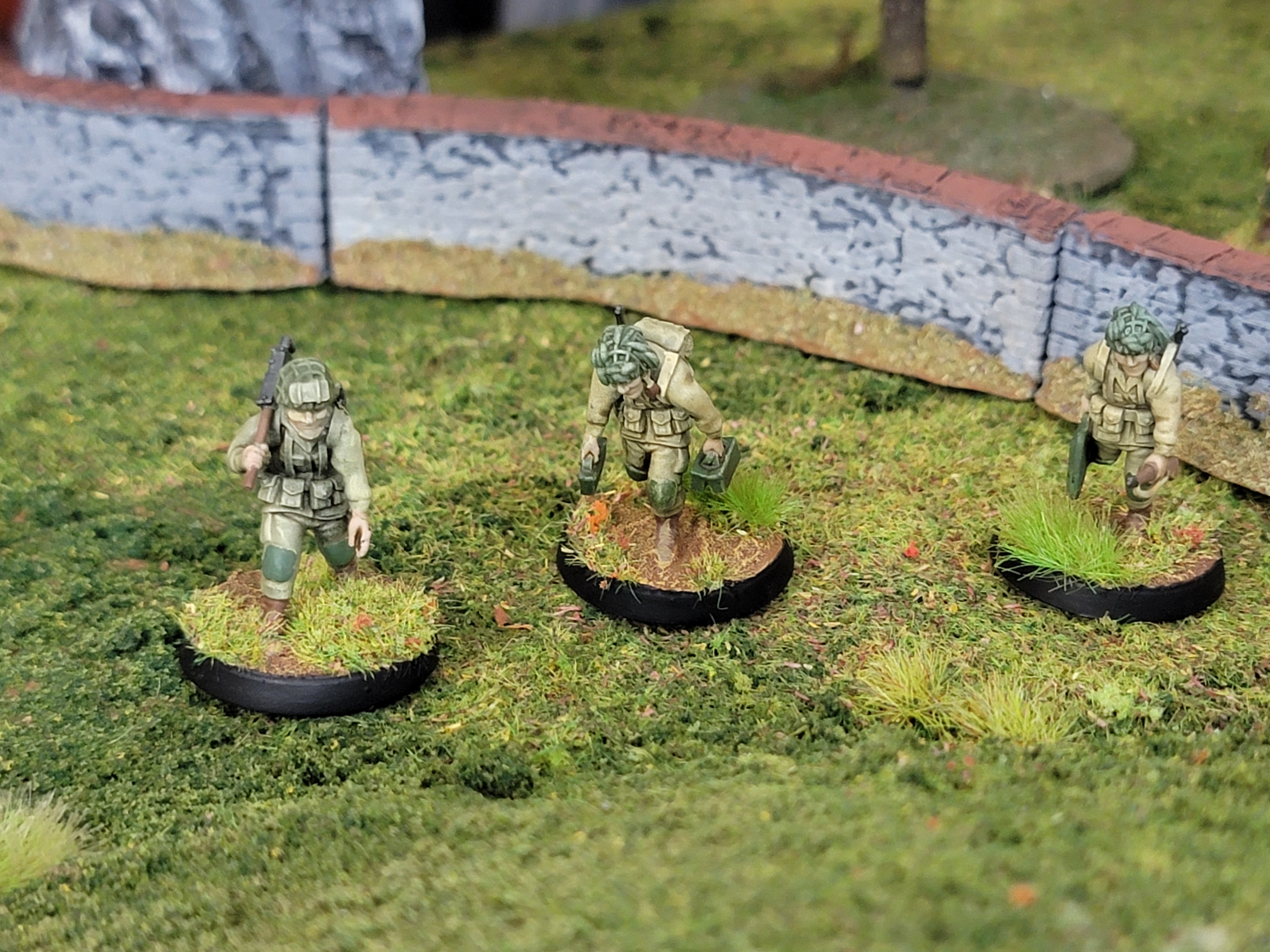 The machine gun teams came out great in terms of posing–I multi-based them so it would show through. I printed off three so I could run a full platoon of paras with LMGs, or otherwise just count them as MMGs and really lay on the heavy firepower when needed.