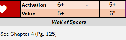 - You’ll note the default profile skills are built in just above the skill drop down selections, without any descriptions. I’m assuming players can learn those default skills, as there are not many and they’re effectively core rules. This unit has “None.” In the snapshot below you’ll see a unit with “Wall of Spears.”