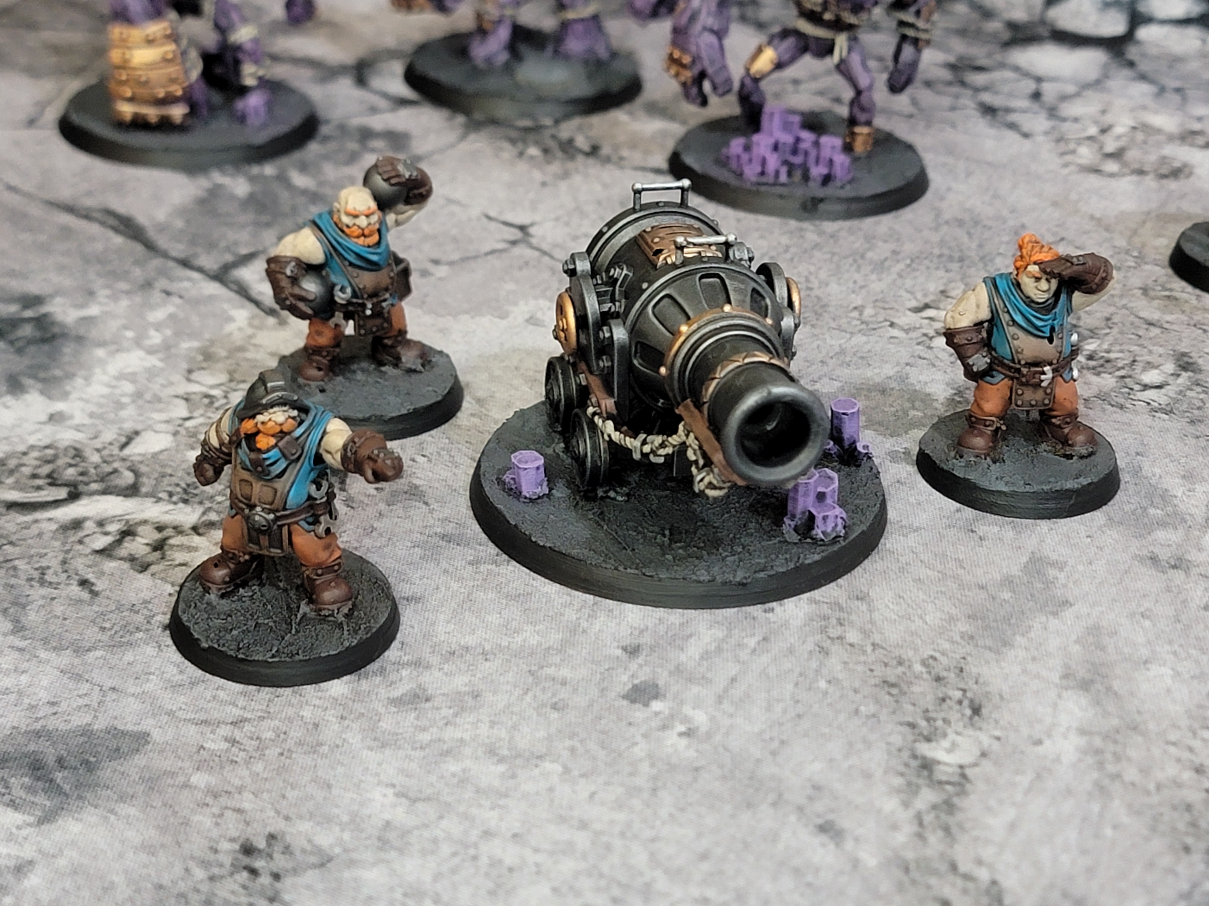 Next up is the cannon and crew. Not much to write home about here but I’m happy with how they came out. I like the simple steampunk cannon design and I love the little aprons on the crew! Altogether, they look great to me.
