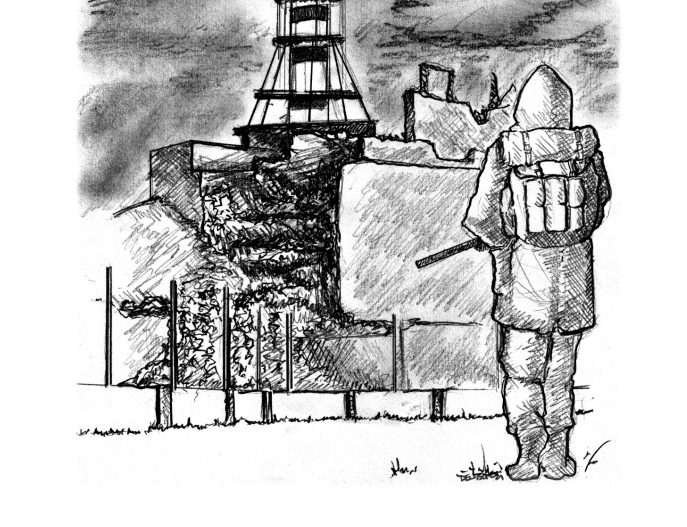 - Terrain: A line of anomalies in the woods, leading to a fence barrier and an old, ruined guard outpost.