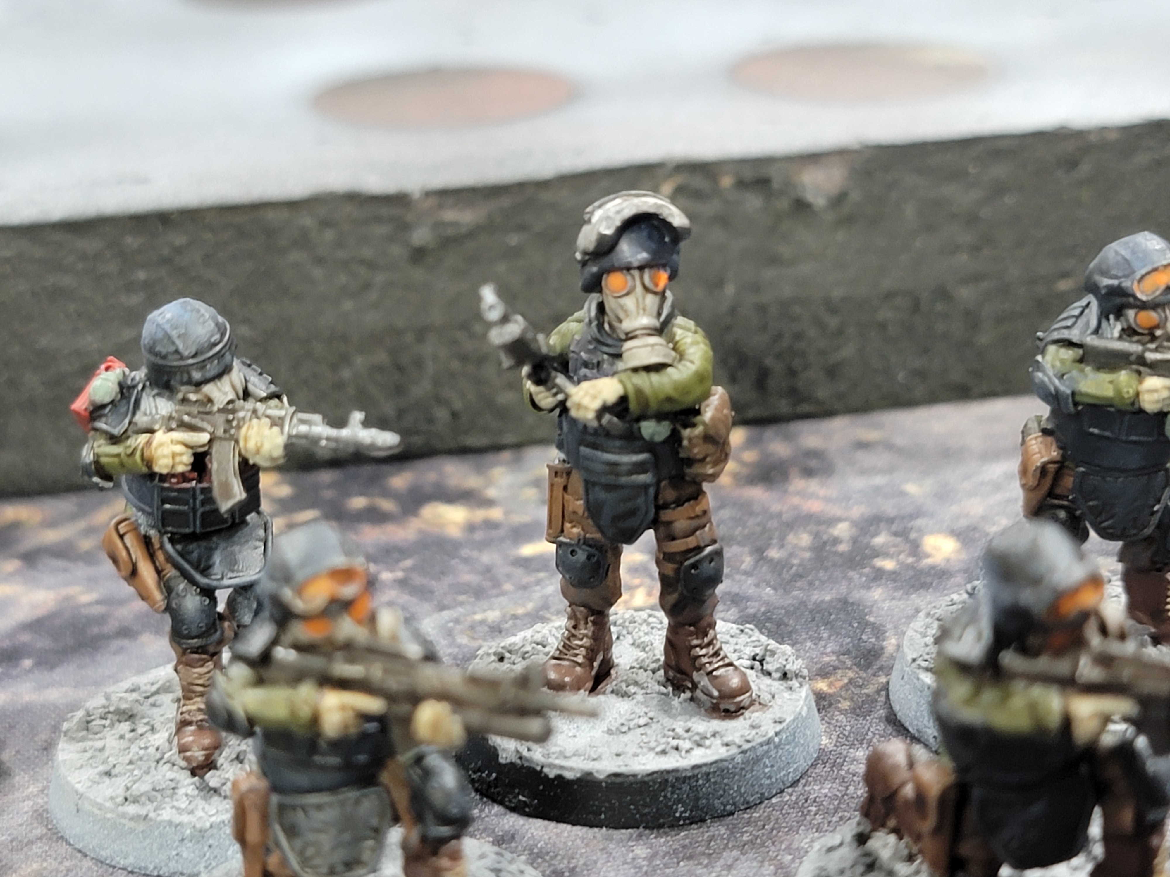 Finally, removing the Stalls and streamlined leveling (I cheated; this is four things in total). In Kontraband, you’re a group sent in on a mission deep into The Zone. You don’t have time to come back out and buy stuff between missions. I’m glad to see this: I don’t like the post-game shopping experience in wargames. It eats time and generally just results in incremental improvements. Instead, here, you find things by scavenging in the missions. This helps to reinforce this sense that you’re in deep and have no true support, while minimizing campaign overhead.