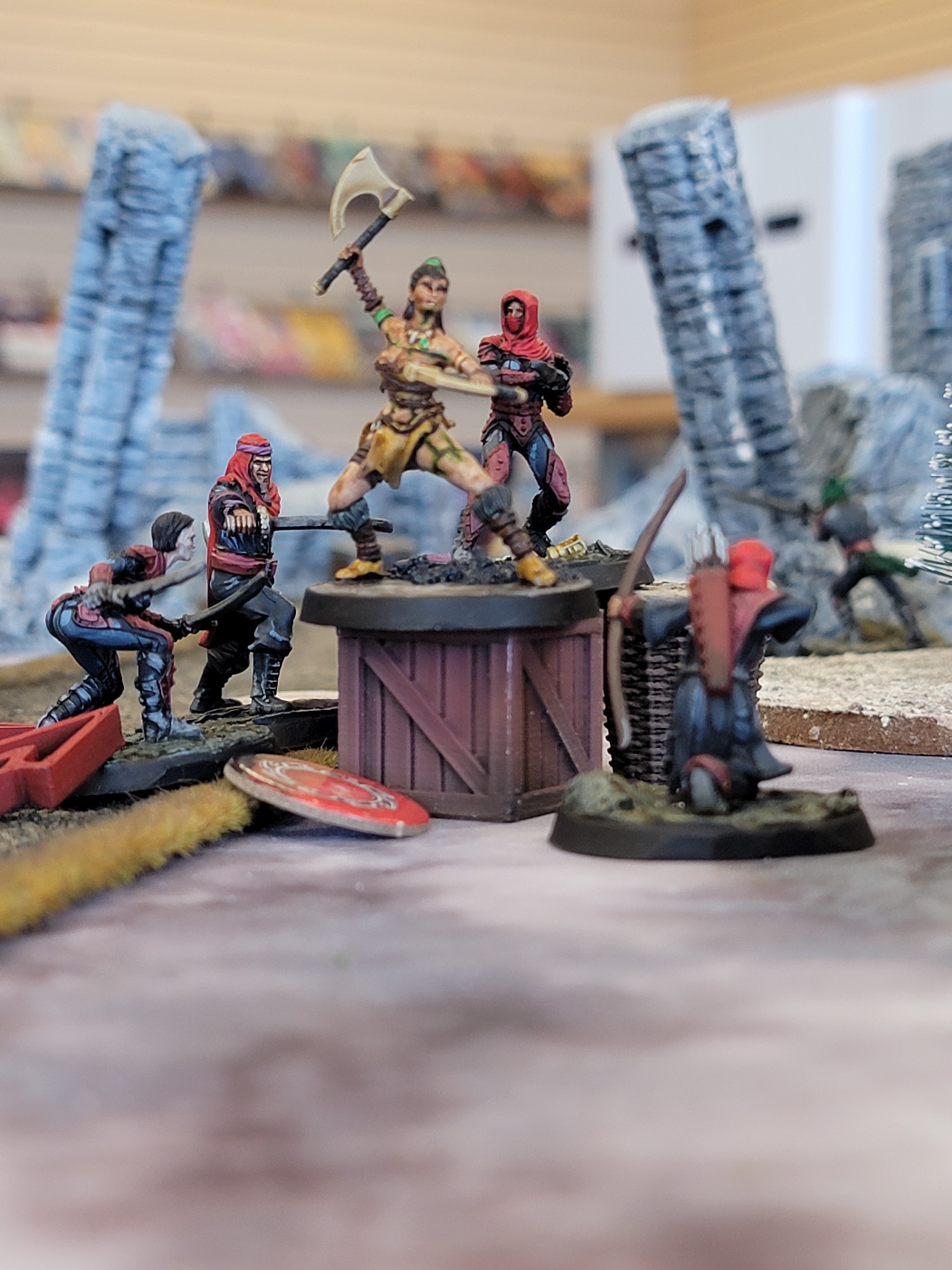 As it is a cooperative adventure, we can also get away with each player only controlling 2-3 models. Give each one a well geared hero and two grunts. This helps keep complexity down while showing you what’s great about the system. It forces you to work with your fellow players, coming up with a plan of entry and attack.