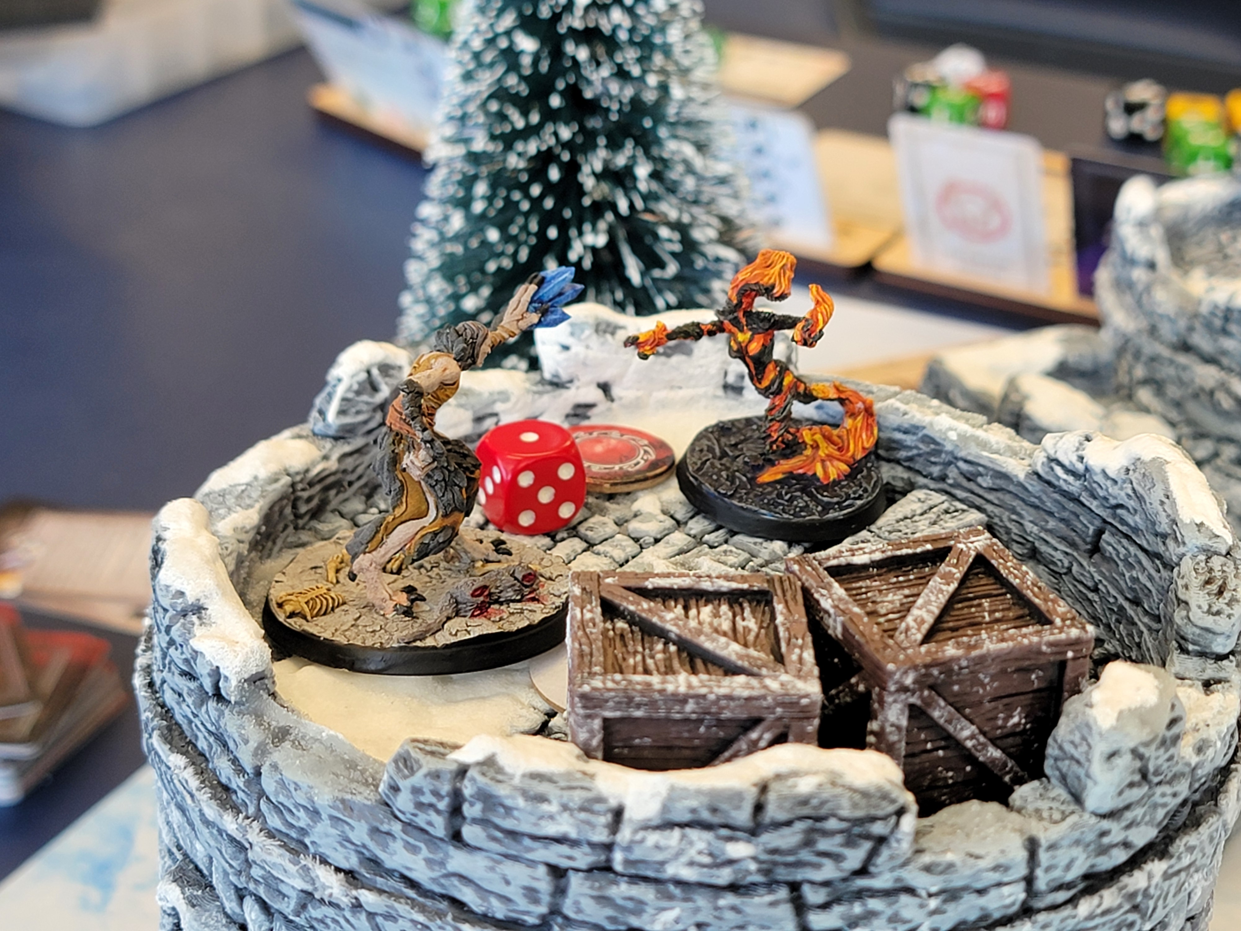 It also helps us to solve the pacing problem. As you are sneaking into the fortress, you start by learning movement rules and how sneaking works before you learn how combat works. You also get to learn the basic round structure and flow of the game as a group. By the time you enter combat, you’ve learned most of the rules and now just need to understand how to read the dice.