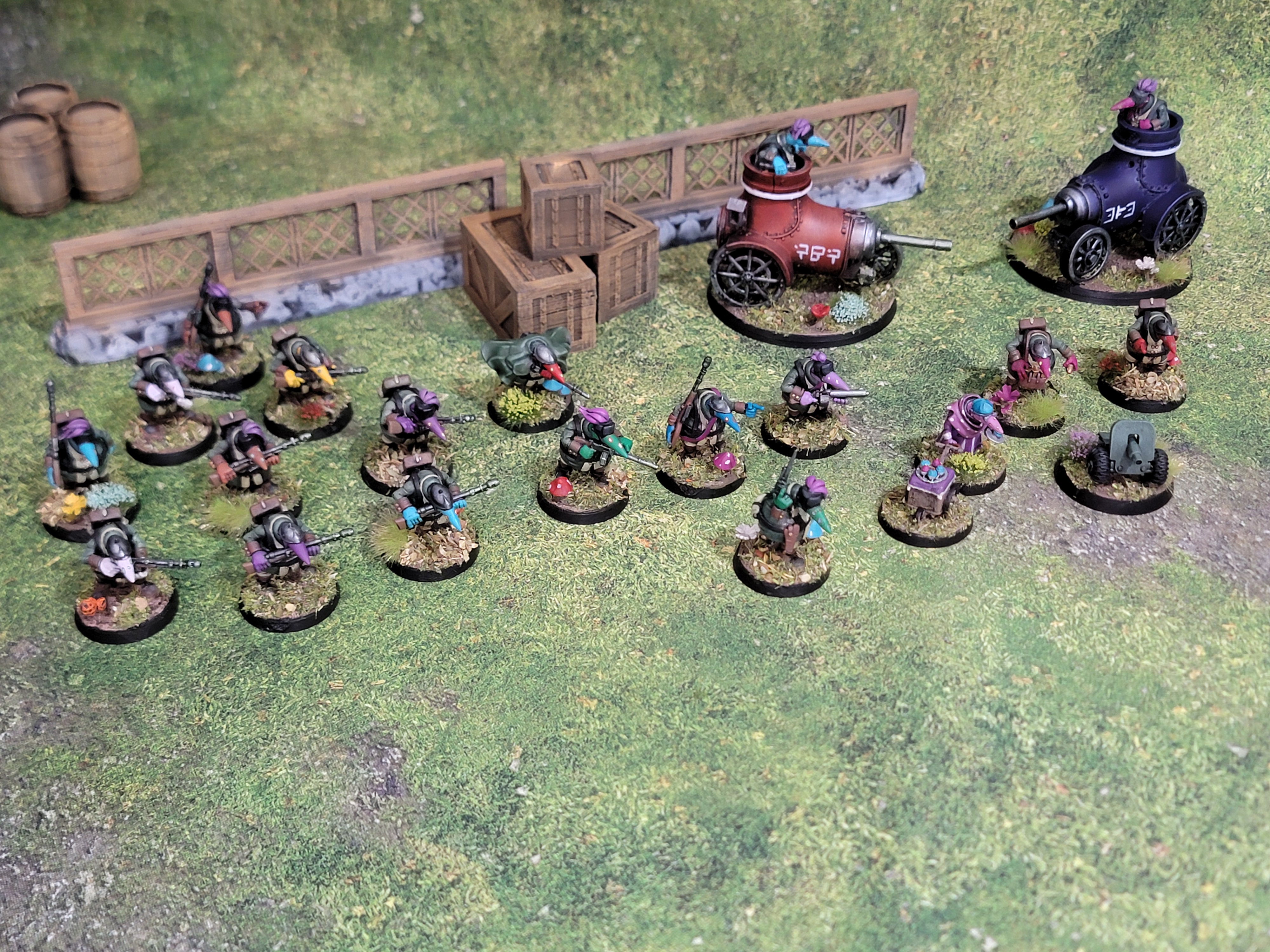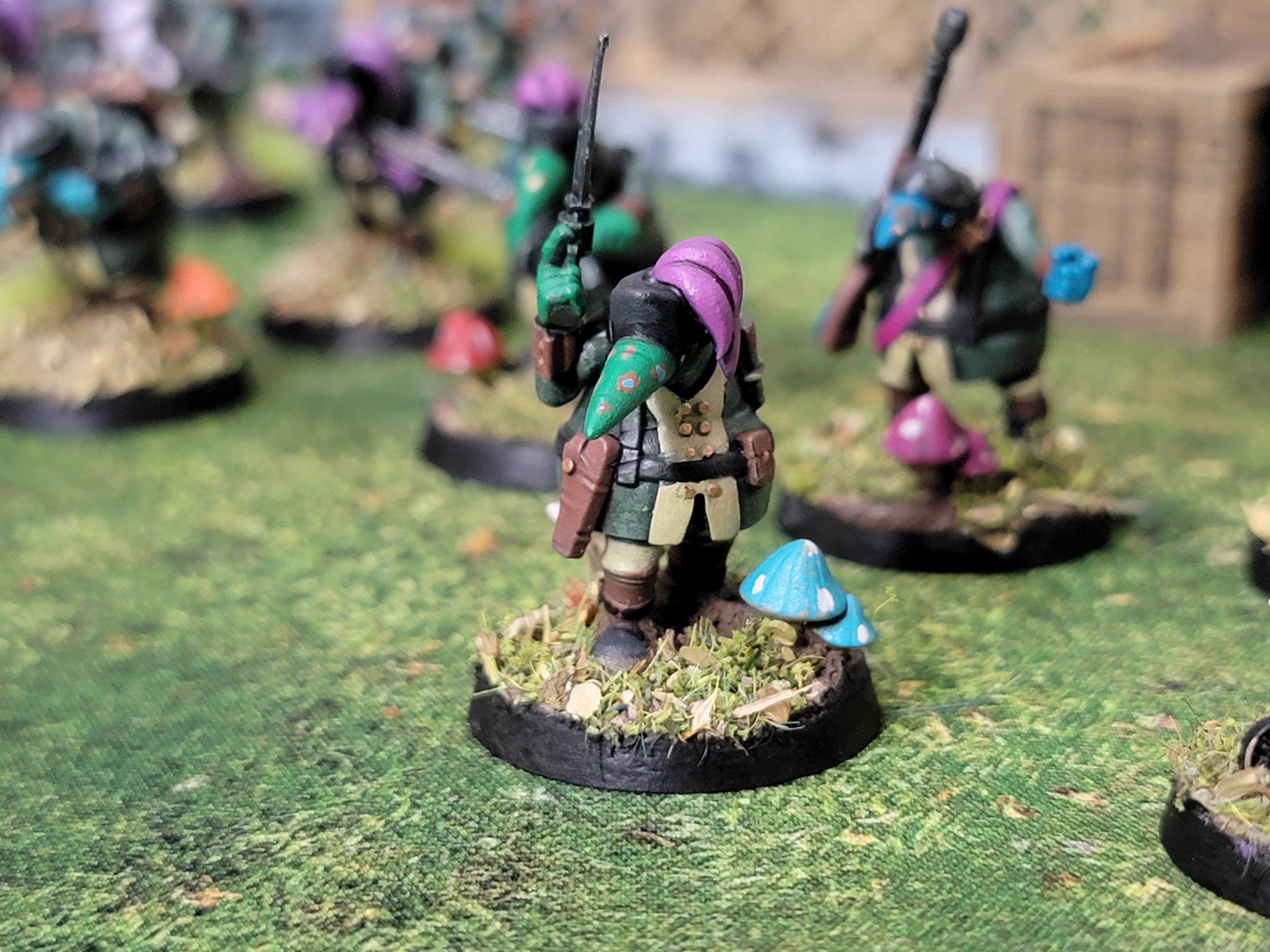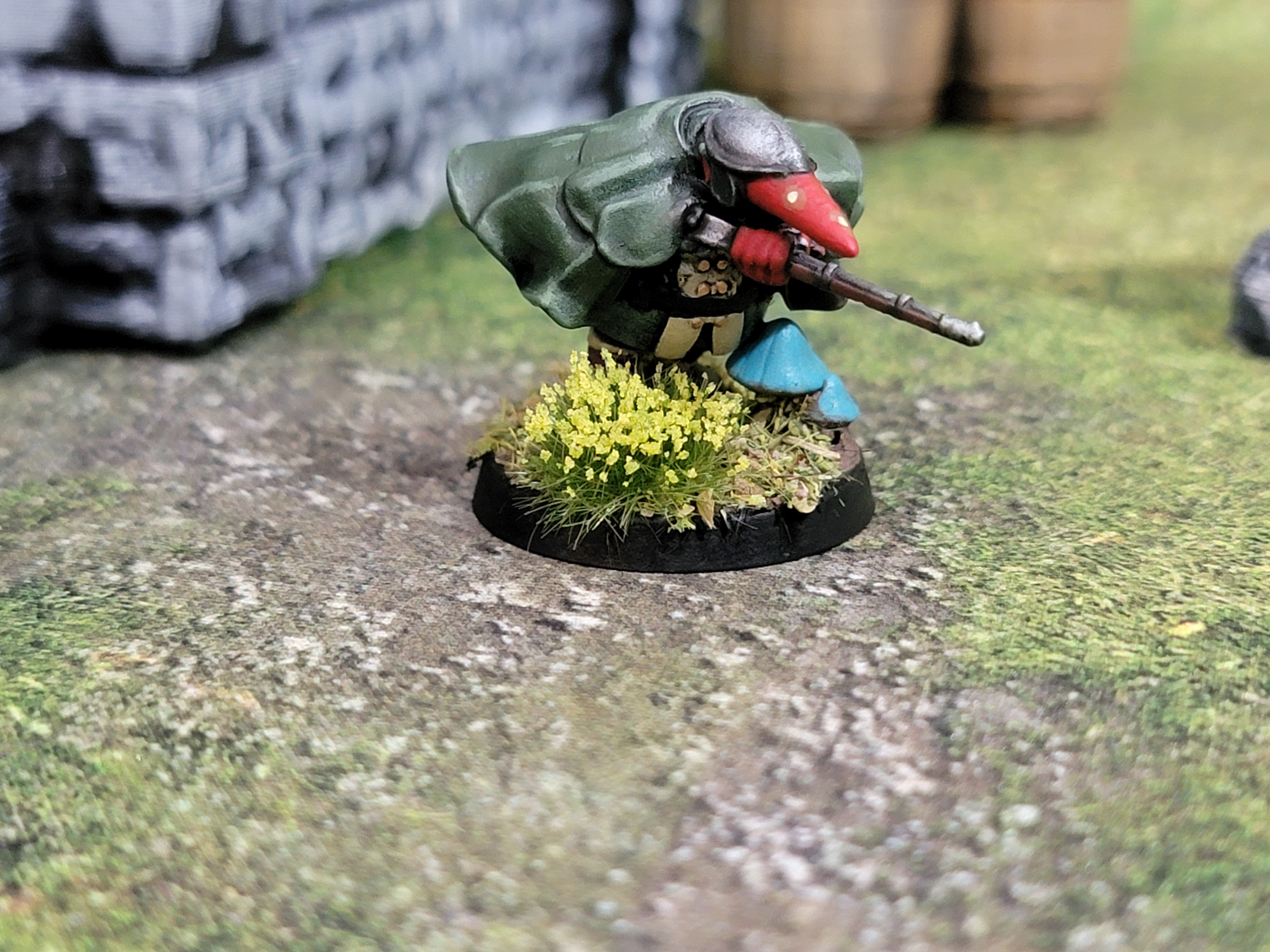 Notably, if you shoot her or catch her in an explosion, you roll on the “They Shot Mum!!” chart. Yet more flavor in the game. I doubt she’ll see many of my battles but obviously I had to paint her.