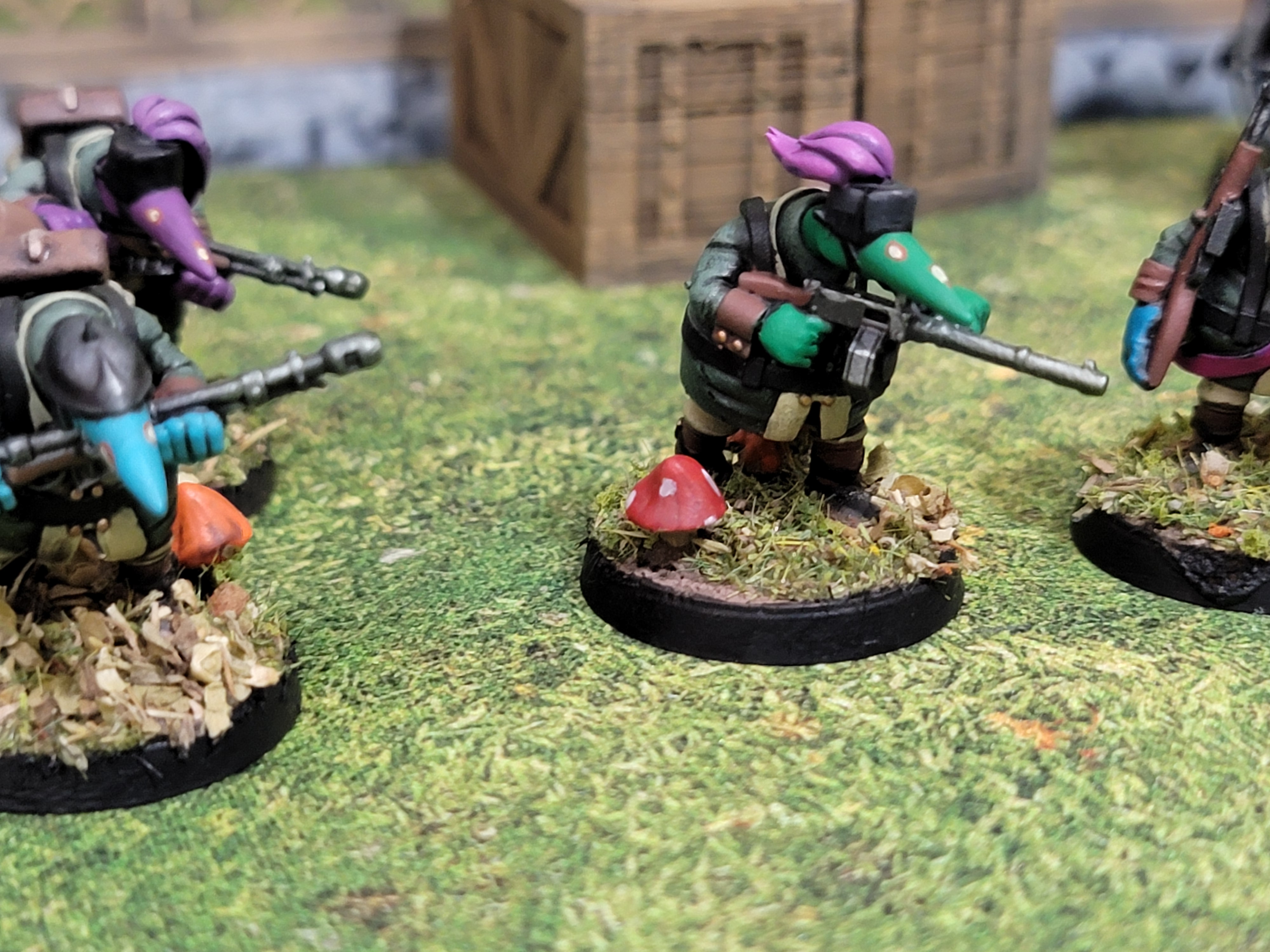 The models have proven excellent to paint, with just the right amount of detail to add interest without overwhelming the painter. The only “annoying” bit on these models was the strap on their boots–which I noticed are not painted in the official paint jobs anyway.